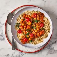 Serve the chickpea, spinach & coconut curry over the brown rice